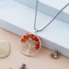 Carnelian Pendant Tree of Life Crystal Stone Pendant Locket with Metal Chain for Healing Crystal Healing Gemstone Size 35-40 mm Carnelian