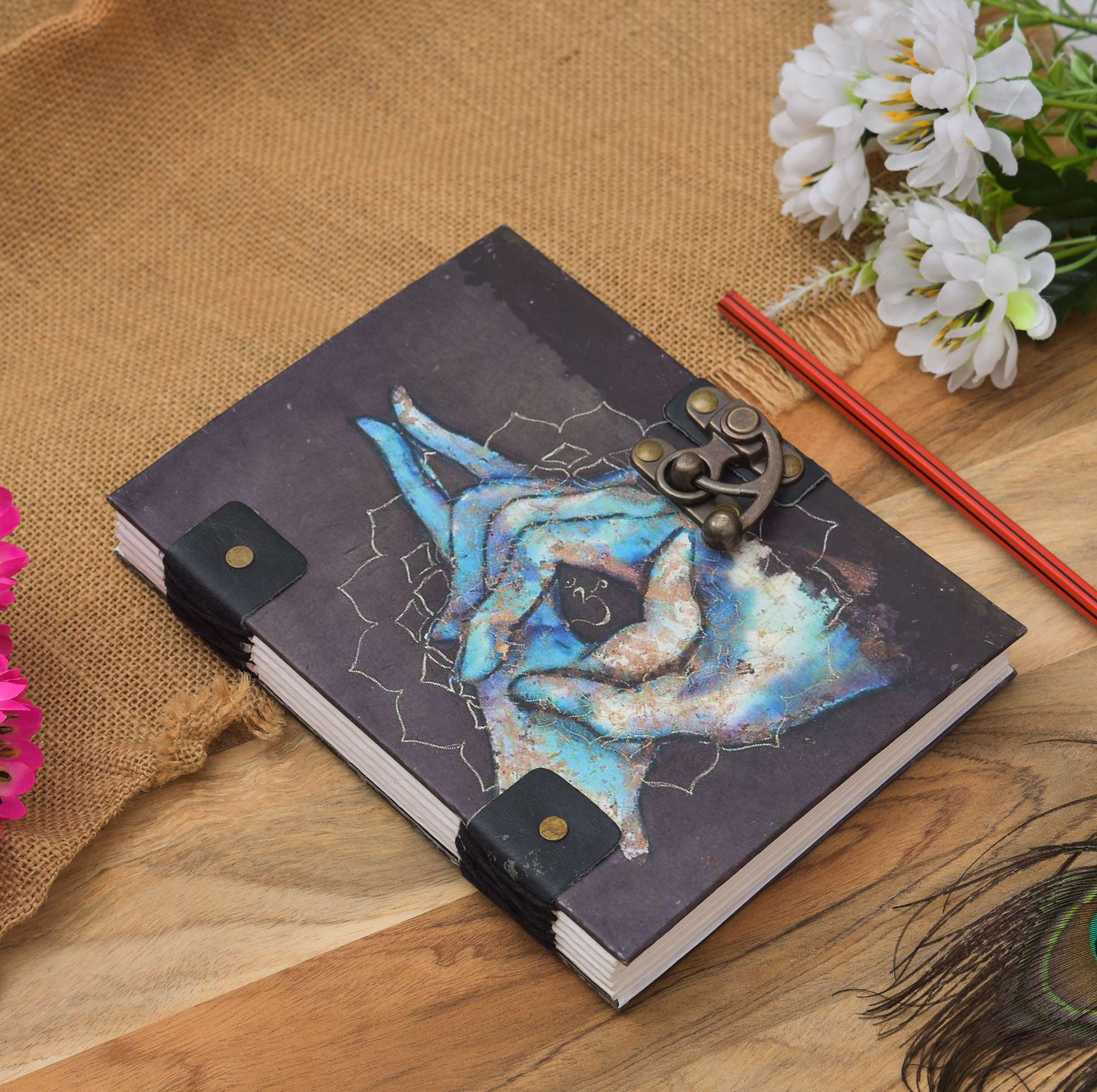 vintage handmade leather journal. Crafted with genuine leather, it radiates authenticity and charm, perfect for those who appreciate classic craftsmanship. The premium antique lock closure adds a touch of elegance and security, ensuring your thoughts and memories are safeguarded within its pages. Inside, you’ll discover 200 brown handmade pages, providing ample space for your musings, sketches, and stories to unfold. Whether it’s for journaling, sketching, or planning, this versatile journal is a timeless companion for your creative endeavors. Treat yourself or a loved one to this exquisite piece, a celebration of tradition and creativity