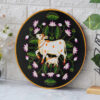 This beautiful pichwai painting features a mother cow and her calf nuzzling each other, surrounded by a vibrant array of flowers.