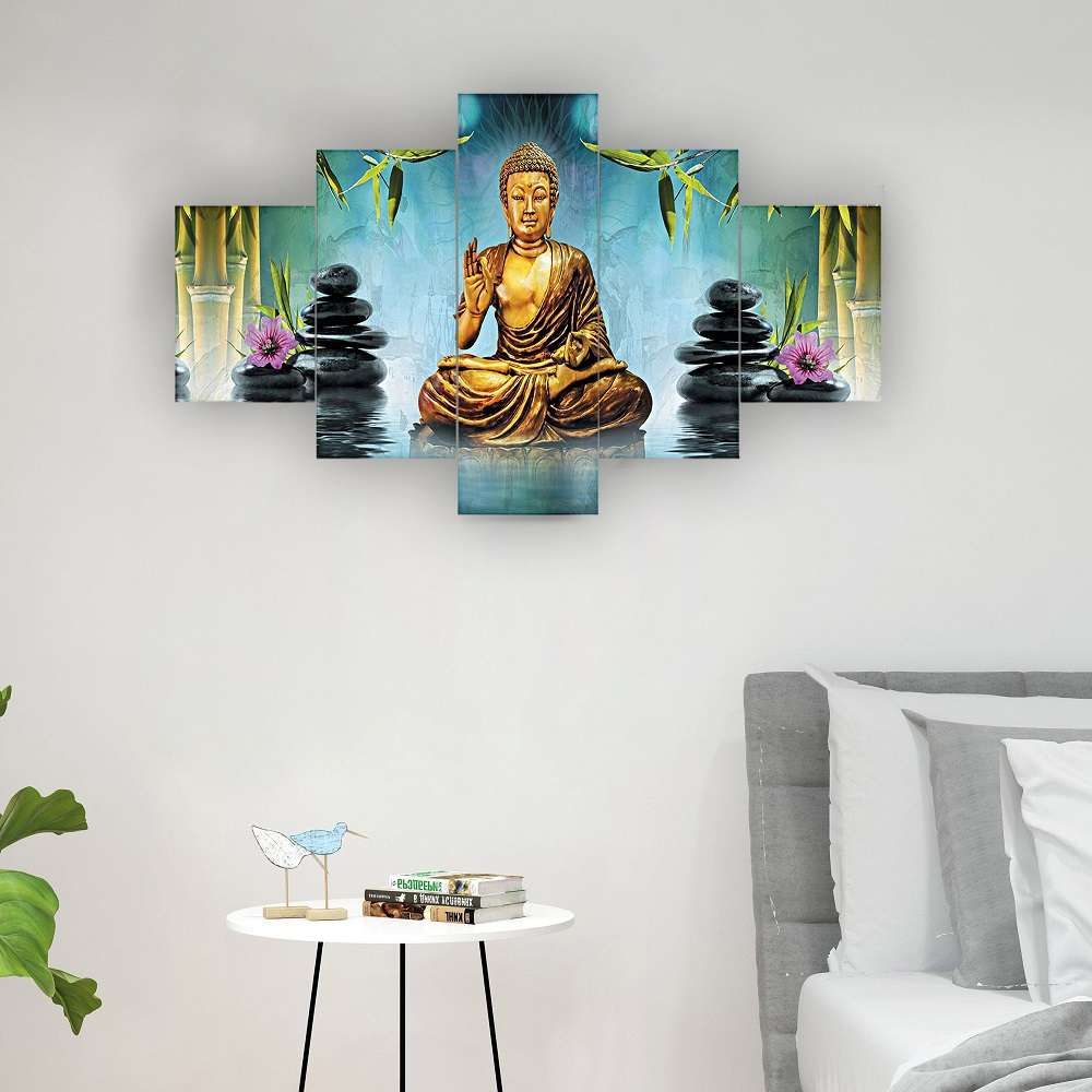 Buddha Set of Five 3D Framed Paintings for Wall Decoration – Ideal for Home, Living Room, and Bedroom (75 x 43 CM)