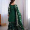 Women’s Chinon Silk Embroidery Sequence Work Straight Kurti With Sharara Suit and Dupatta Set