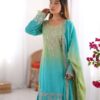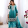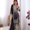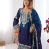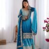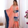 Women’s Chinon Silk Heavy Embroidery Straight Kurta With Sharara and Dupatta set