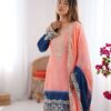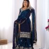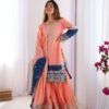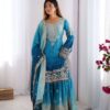 Women’s Georgette Embroidery Work Straight Kurta With Sharara Suit and Dupatta Set