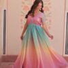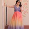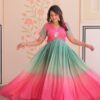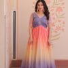Women's Cotton Ombre Anarkali Gown Dress with Sequin Embroidered Net SleevesWomen’s Cotton Ombre Anarkali Gown Dress with Sequin Embroidered Net Sleeves