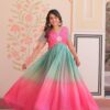 Women’s Cotton Ombre Anarkali Gown Dress with Sequin Embroidered Net Sleeves
