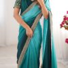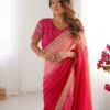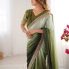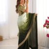 Be the first to review “Women’s Elegant Ombre Green Georgette Saree with Intricate Golden Zari & Stone Embellishments – Complete with Heavily Worked Blouse for Festive & Wedding Wear”