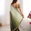 Women’s Elegant Ombre Green Georgette Saree with Intricate Golden Zari & Stone Embellishments – Complete with Heavily Worked Blouse for Festive & Wedding Wear