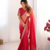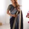 Chinon Silk saree with thread and sequence lace work, 5.5M cut, includes unstitched blouse. Priced at ₹4,399.00.