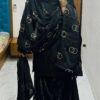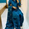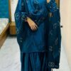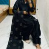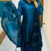 Women’s Chinon Silk Embroidery Sequence Work Straight Kurti With Sharara Suit and Dupatta Set