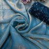 Women’s Lustrous Teal Tissue Silk Saree with All-Over Sequin Embellished Blouse Piece