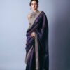 Women’s Luxurious Shimmering Grey Organza Saree with Intricately Embroidered Black Blouse – Perfect for Festive & Evening Wear